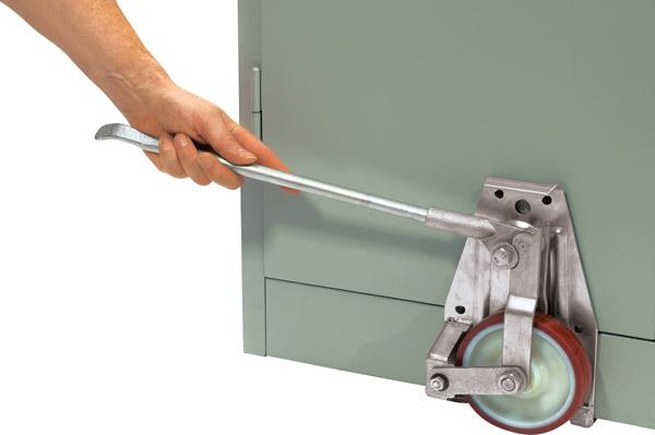 Diese robusten Hubrollen haben eine Tragkraft von 1000 kg pro Paar für den Transport von schweren Schränken oder anderen Teilen, die in Bodennähe angehoben werden sollen.