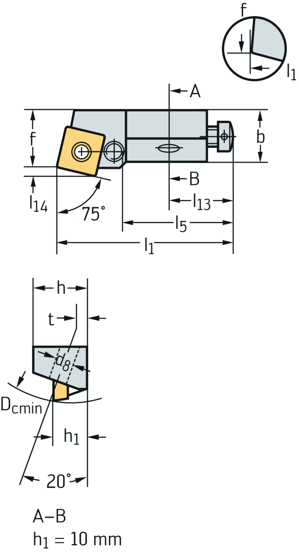 ISO-Kurzklemmhalter SSRC-12...CA • metrisch • rechts • κ=75° • Dc(min)=40mm