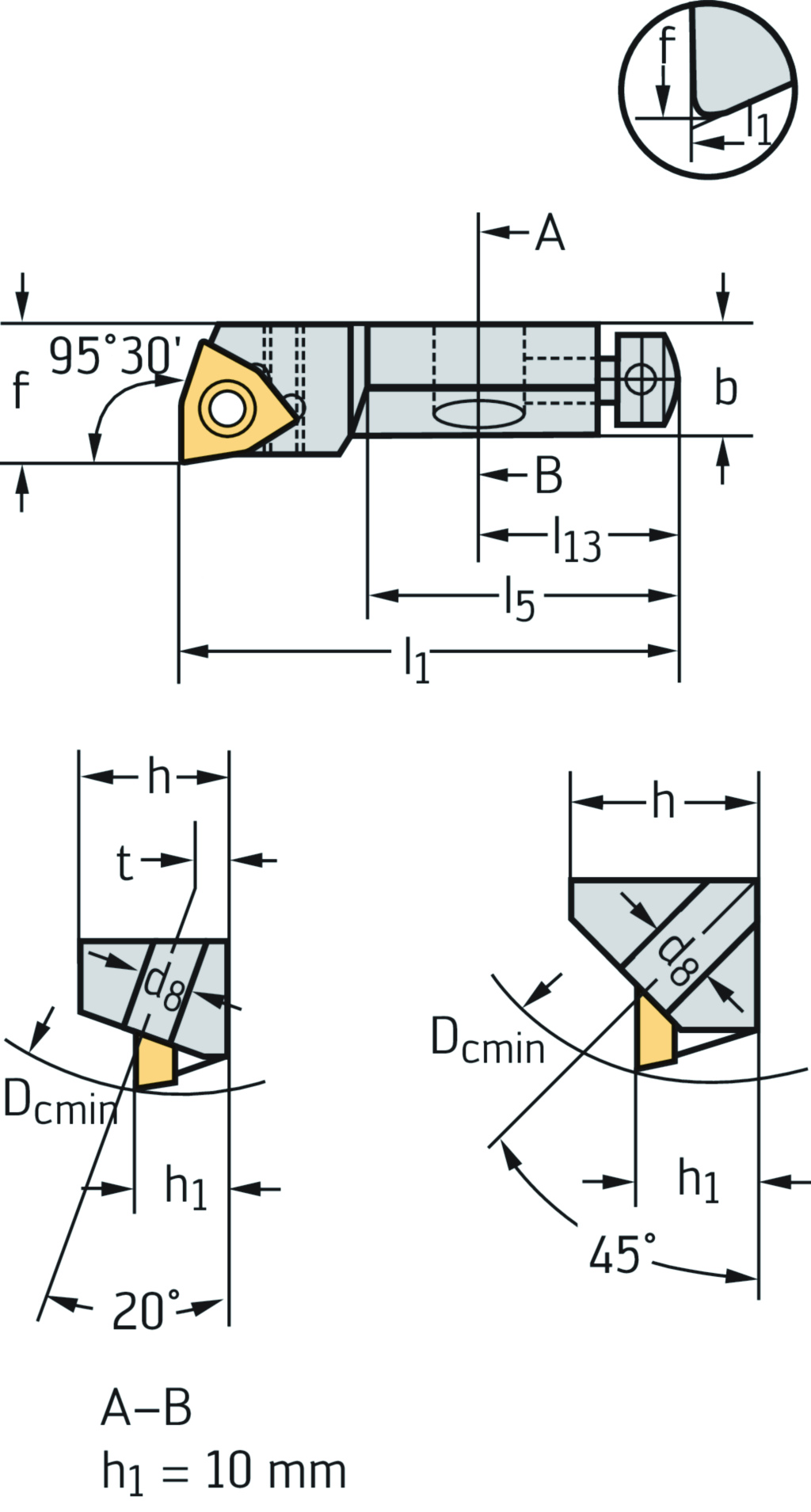 ISO-Kurzklemmhalter SWFC...CA • metrisch • rechts • κ=100° • Dc(min)=40mm