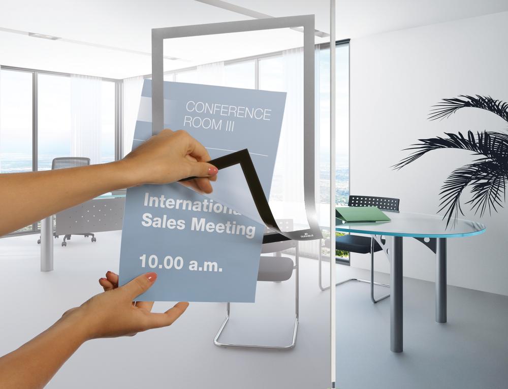 Diese flexiblen Informationsrahmen sind auf allen sauberen und tragfähigen Oberflächen einsetzbar. Bei den im Hoch- und Querformat einsetzbaren Rahmen können durch die aufklappbare, magnetische Vorderseite die benötigten Dokumente schnell und einfach ausgetauscht werden. • Vordertasche: magnetisch • Rückseite: selbstklebend • Format: DIN A4, DIN A3 • Doppelseitige Lesbarkeit: identische Optik des Rahmens von beiden Seiten
