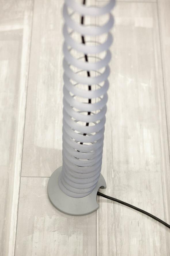 Die vertikale silberfarbende Kabelspirale ist flexibel und einfach zu montieren.