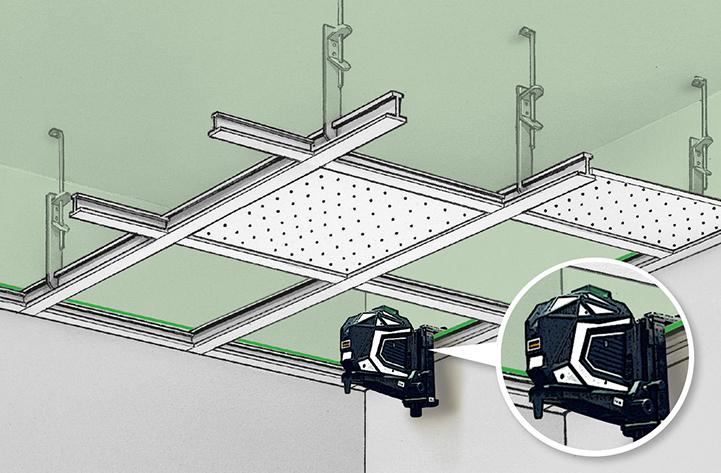 • Einfache horizontale und vertikale Befestigung an Trockenbauprofilen