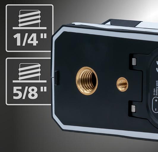 • Einzeln schaltbare, horizontale 360°-Laserlinie und zwei vertikale Laserlinien