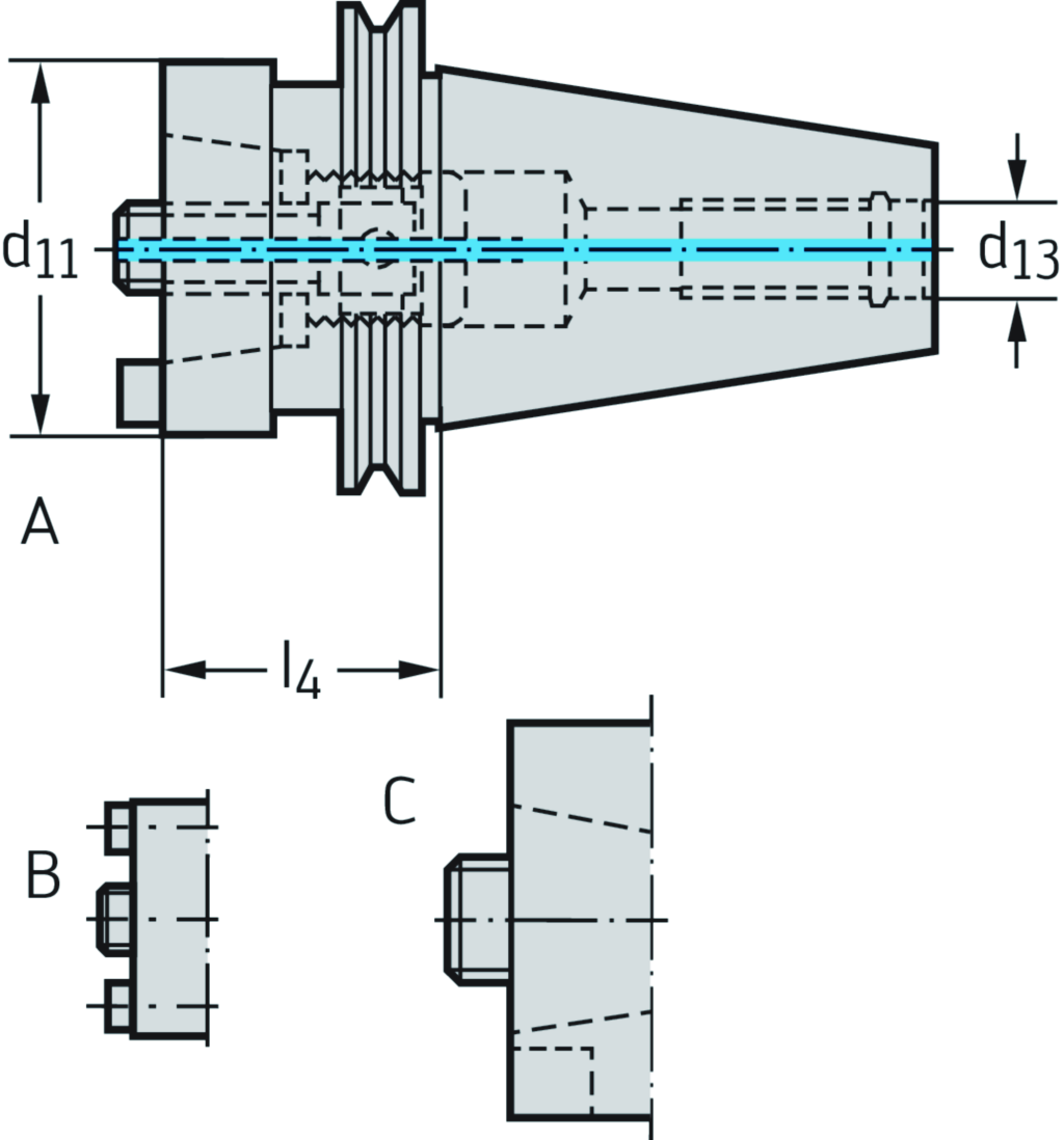 Master ANSI ASME B5.50 A100M.U3 • inch • Modulare Aufnahme NCT • d1=50 • d11=80