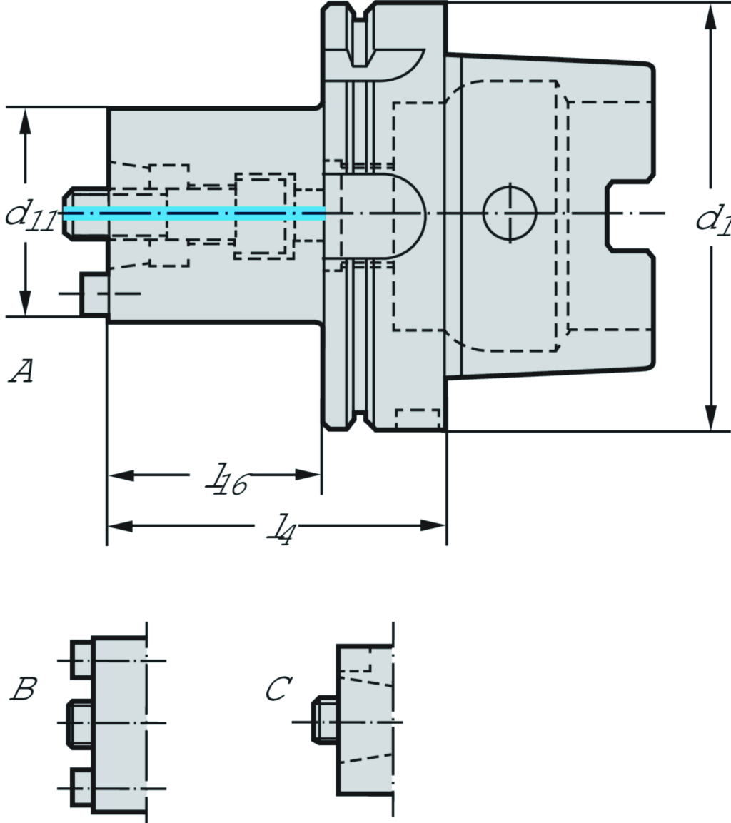 Master DIN 69893-1 A A100M...HSK • metrisch • Modulare Aufnahme NCT • d1=63 • d11=50