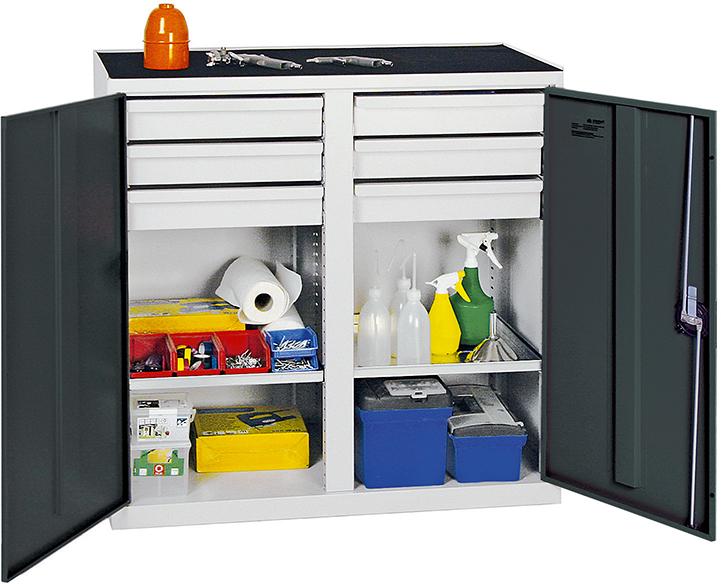 Werkzeug- und Materialschrank Serie 2000, 6 Schubladen, 2 Fachböden und Mitteltrennwand