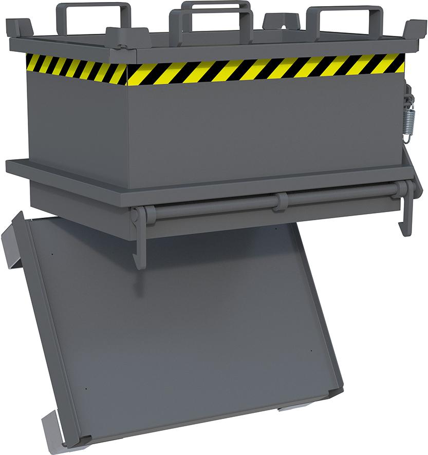 Dieser kleine Klappbodenbehälter verfügt über eine Bodenentleerung. Er ist überall dort einsetzbar, wo wenig Platz ist.