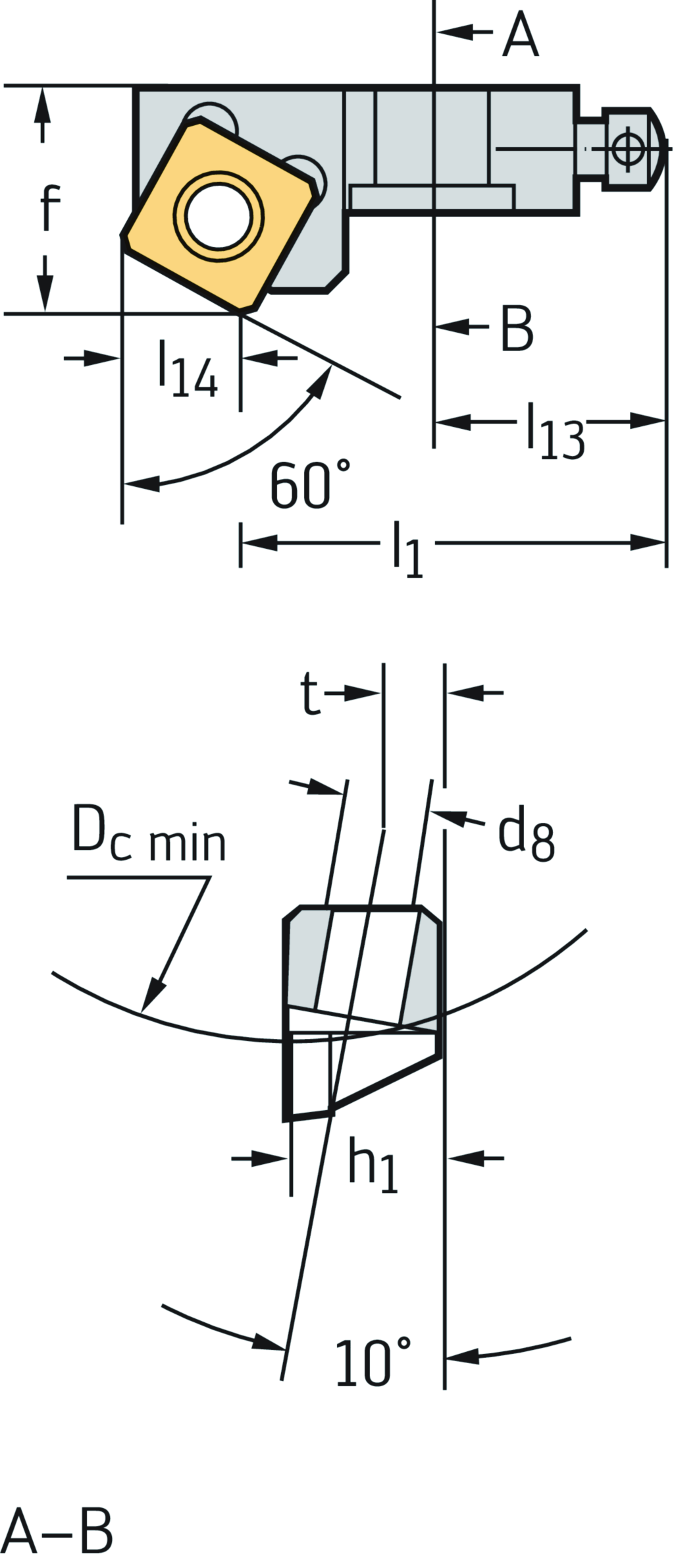 Mini-Kurzklemmhalter FR698 • metrisch • rechts • κ=60° • Dc(min)=20mm