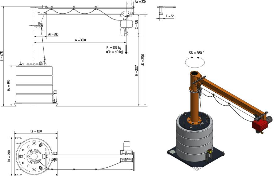 Mobiler Säulenschwenkkran125kg,3,0m,360 MOBILUS+Elektrokettenzug MOB12-PR1,25-3,0