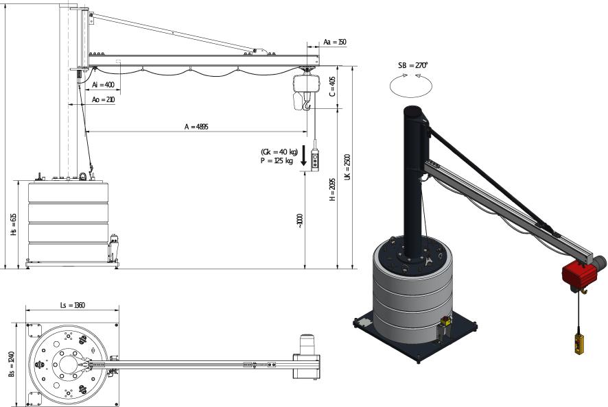 Mobiler Säulenschwenkkran125kg,4,9m,270 MOBILUS+Elektrokettenzug MOB12-US1,25-4,9