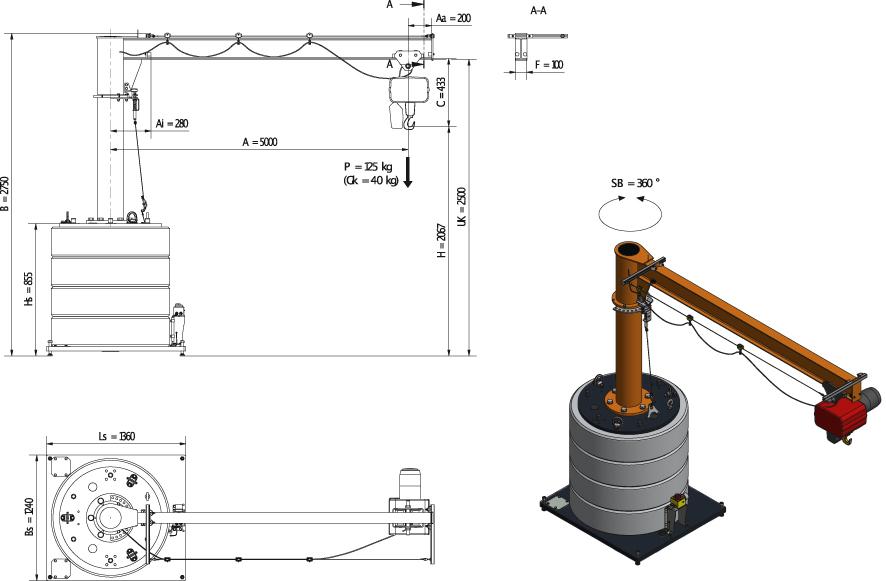 Mobiler Säulenschwenkkran125kg,5,0m,360 MOBILUS+Elektrokettenzug MOB12-PR1,25-5,0