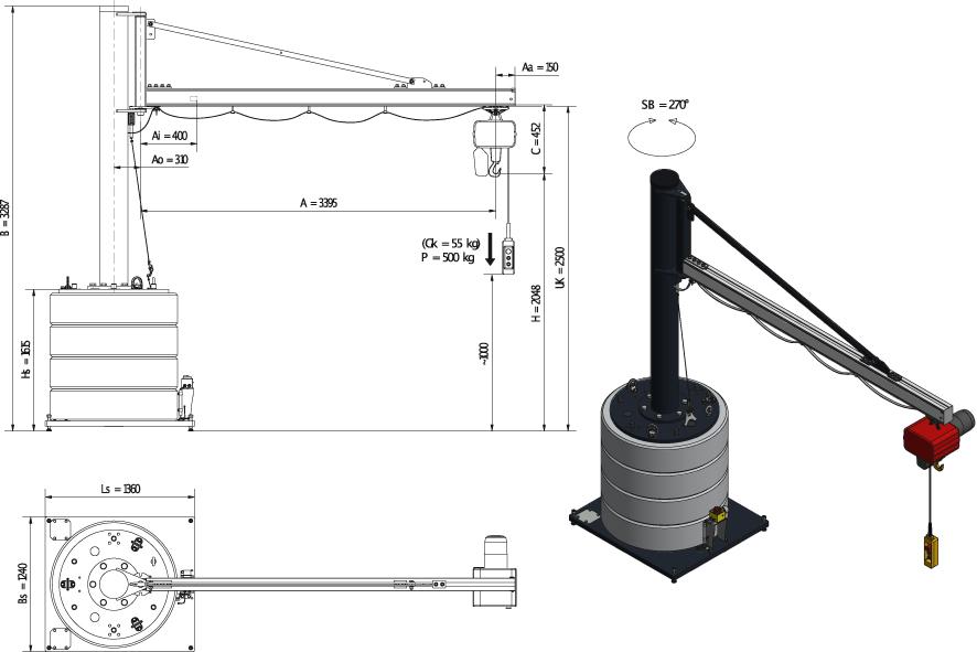 Mobiler Säulenschwenkkran500kg,3,4m,270 MOBILUS+Elektrokettenzug MOB12-US5-3,4