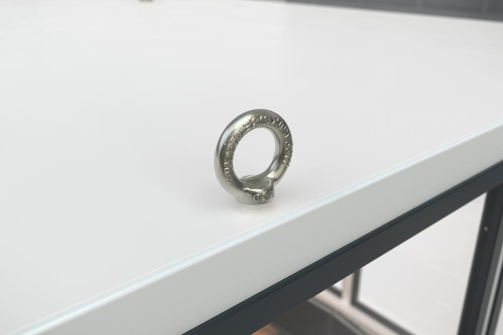 Dieses Raummodul schafft schnell temporär oder dauerhaft Arbeitsplätze. Es kann als Einzelbüro, Teambereich, Besprechungsraum oder Werkstatt dienen. • Standardisierter Grundriss und Wandaufbau • Schnelle Auslieferung: innerhalb von 4 Wochen • Dämmung: Mineralfaserplatten • Dämmungsstärke: 40 mm • Einscheibensicherheitsglas (ESG): Stärke 5 mm, Glaseinfassung aus Aluminium • Außenwandverkleidung: Stahlblech • Wandverkleidung: Holzwerkstoffplatte, Stärke: 16 mm • Fußboden: PVC, grau • Mit Kranösen: für schnelle Versetzung des Raummoduls • Öffnungsart: DIN rechts nach außen aufgehend • Farbe: Wand- und Dachrahmen RAL 9002 grauweiß, Fenster- und Türrahmen RAL 7016 anthrazit