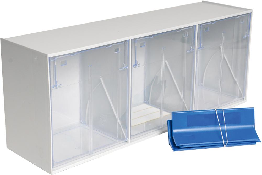 Mit diesen Klarsicht-Magazinen ist eine übersichtliche und nahezu staubfreie Aufbewahrung von Kleinteilen und Zubehör möglich. • Sehr gut kombinierbar für individuelle Lagerlösungen • Einsatzbereich: für Industrie, Technik, Medizin, Labore und Werkstätten • Gehäuse: hochschlagfester Kunststoff, lichtgrau • Kippschublade: aus glasklarem Polystyrol mit praktischer Kippfunktion • Einfach stapelbar • Zur stabilen Wandmontage • Für Kleinteile und Zubehör • Für hohe Belastungen und lange Lebensdauer • Temperaturbeständig: –20° C bis +70° C • Farbe: lichtgrau
