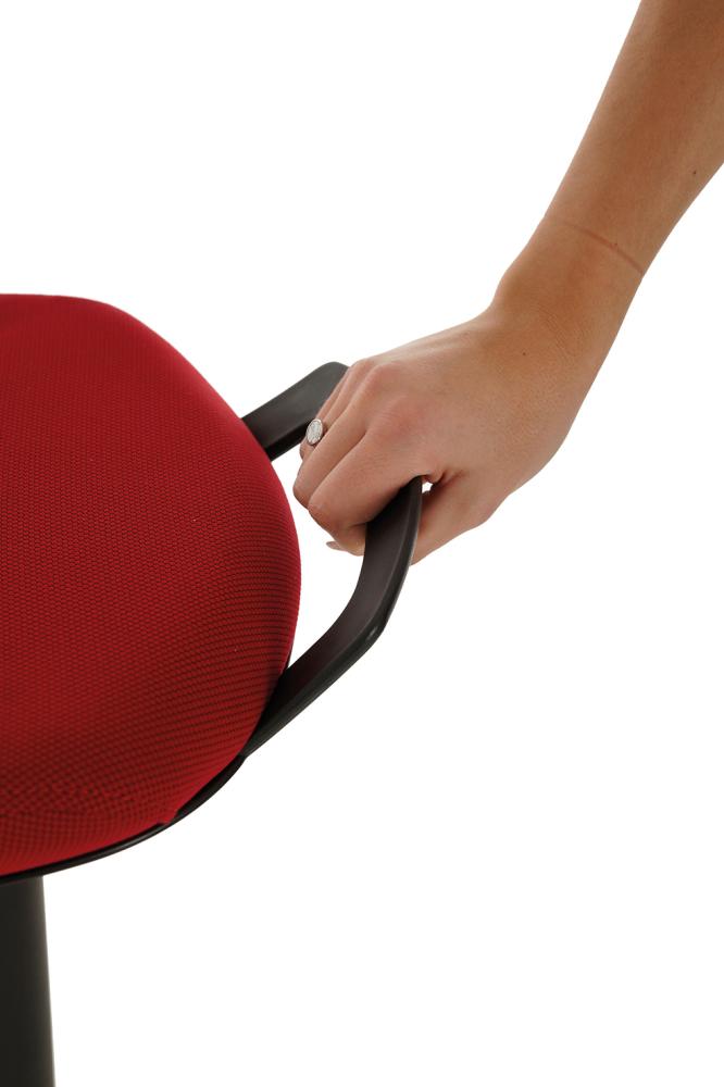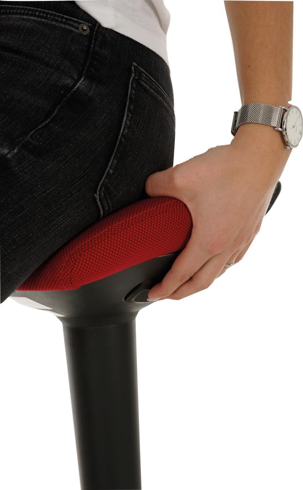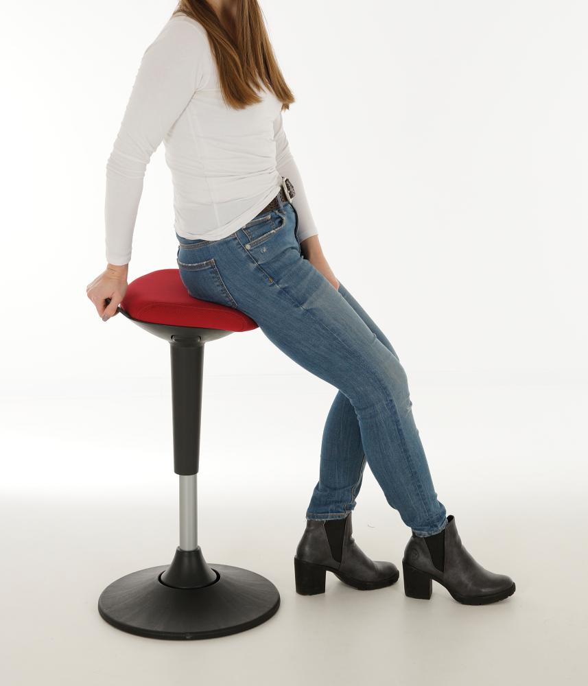 Diese Stehhilfen sind multibeweglich und haben einen um das Fußgelenk schwenkenden Sitz. • Polstersitz: ergonomisch geformt • Sitzhöhenverstellung: stufenlos, mittels abgedeckter Sicherheitsgasfeder von 600–840 mm, Auslöseknöpfe seitlich am Sitz • Kunststoff-Tellerfuß: schwarz, Ø 400 mm mit integrierten Pads für verschiedene Bodenbeläge • Für Personen bis 110 kg • Vormontiert: Bauteile einfach ineinanderstecken