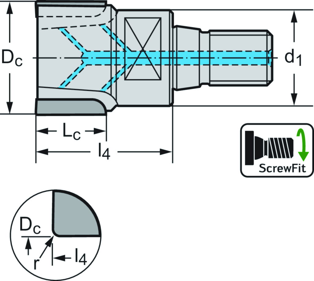 PKD-Eckfräser MP160-T • ScrewFit • metrisch • Drallwinkel 4° • WDN20 • Dc=25mm • R=0,2mm • Z=4