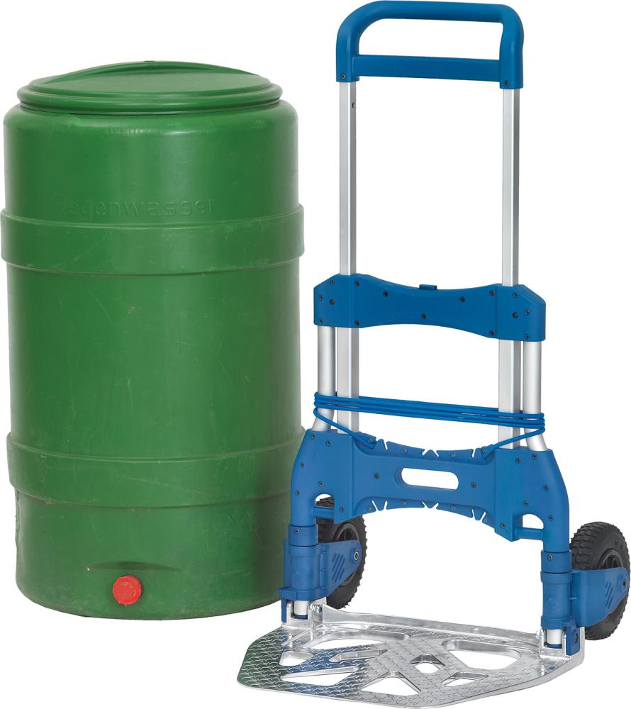 Der handliche, zusammenschiebbare Aluminium-Paketroller ist mit rutschsicheren Griffbügeln ausgestattet.