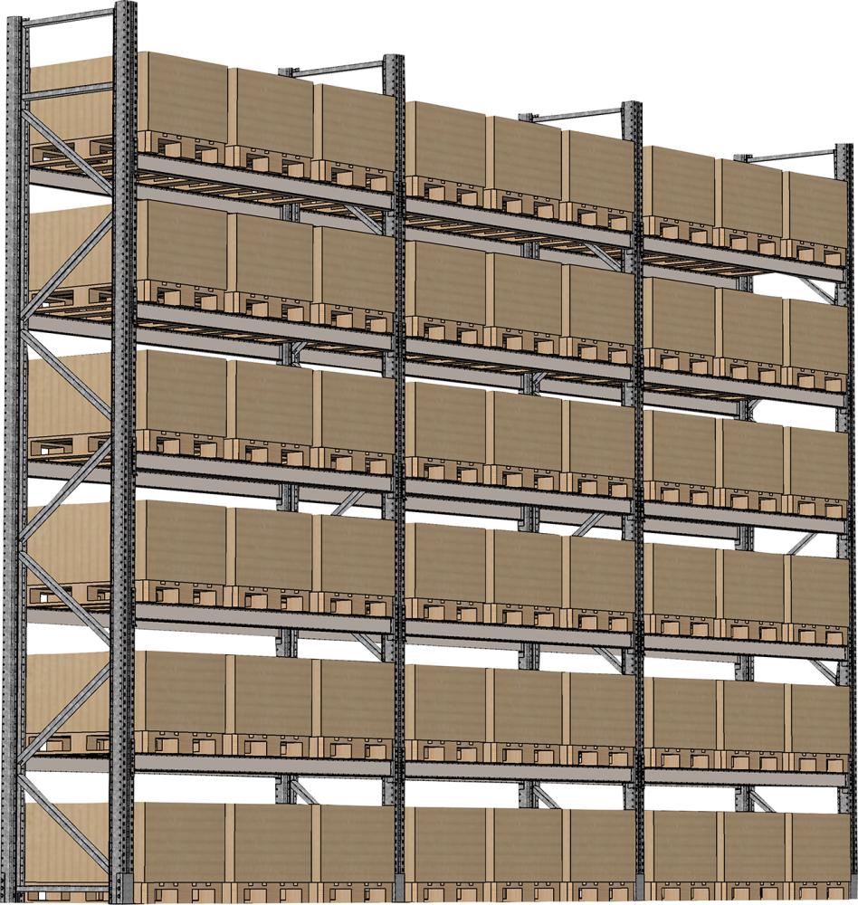 Palettenregal verzinkt 3 Felder á 1825 mm H 6000xT 1100mm 30 Holme 2000 kg