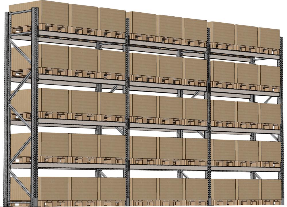 Palettenregal verzinkt 3 Felder á 2700 mm H 4500xT 1100mm 24 Holme 3000 kg