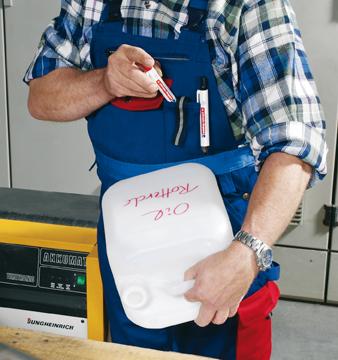 • Zum Markieren und Beschriften fast aller Materialien wie z. B. Papier, Karton, Metall, Glas, Kunststoff und glattes Holz