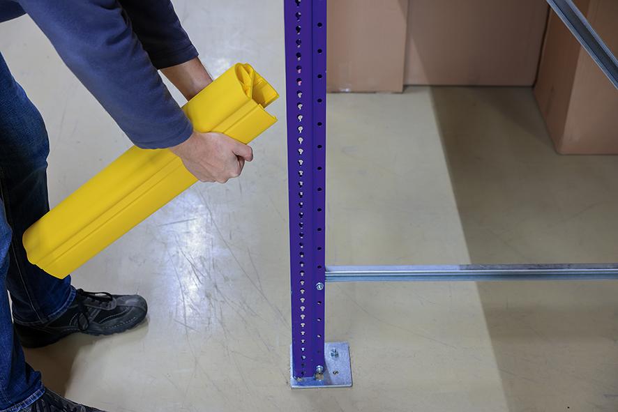 Dieser flexible Anfahrschutz schützt Regale vor Anfahrschäden und vermindert Ausfallzeiten. • Material: Spezialkunststoff, flexibel • Wirkungsweise: elastisch, rückfedernd und formstabil. Springt nach dem Aufprall in seine alte Form zurück. Durch die runde, feste Bauweise werden die Staplergabeln vom Regalständer abgelenkt, und das Risiko einer direkten Kollision wird vermindert • Leichte Montage- Demontage zur gesetzlichen Regalprüfung • Gute Erkennbarkeit und Warnwirkung • Kein Abziehen bei Palettenentnahme • Keine Beschädigung des Bodens beim Aufprall, da keine Bodenbefestigung erforderlich ist Hinweis: TÜV-geprüft nach DIN EN 15512:2010-09,Kapitel 6.4.1 DIN EN 15635:2009-08,Kapitel 9.5.1. mit 400 Joule.