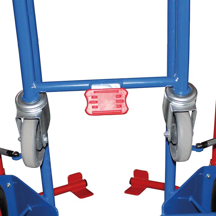 Die Stahlrohr-Reifenkarre ist mit einem Gasdruck-Hebelsystem zum einfachen Öffnen und Klemmen von Rädern ausgestattet.