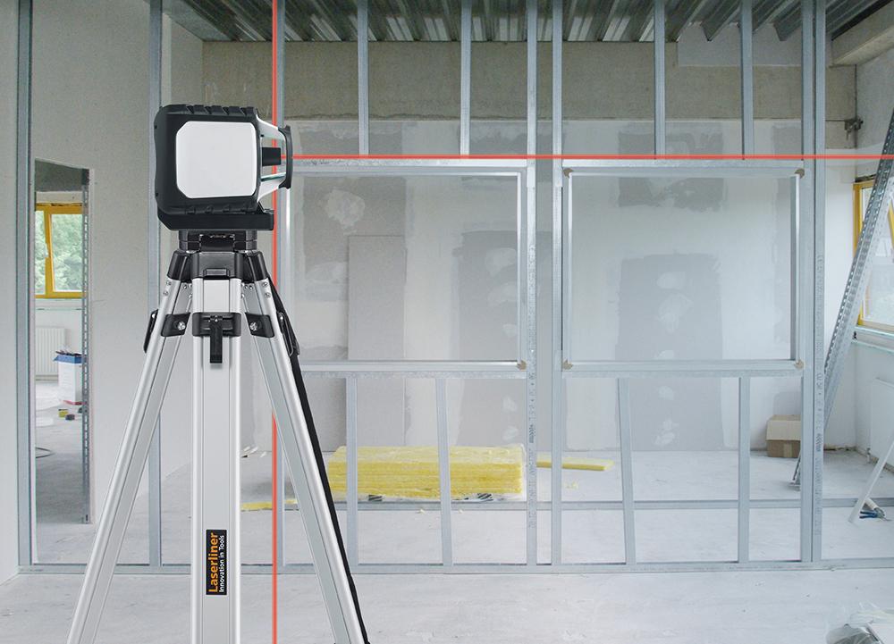 • 90°-Referenzstrahl zum Loten und Ausrichten von Trennwänden
