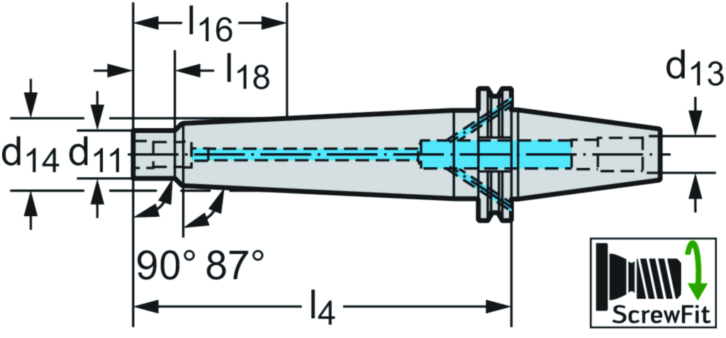 SK-Aufnahme – schwingungsgedämpft AC060-S • metrisch • Für ScrewFit-Frontstücke • Mit voreingestellter Schwingungsdämpfung • d1=40 • d11=T22
