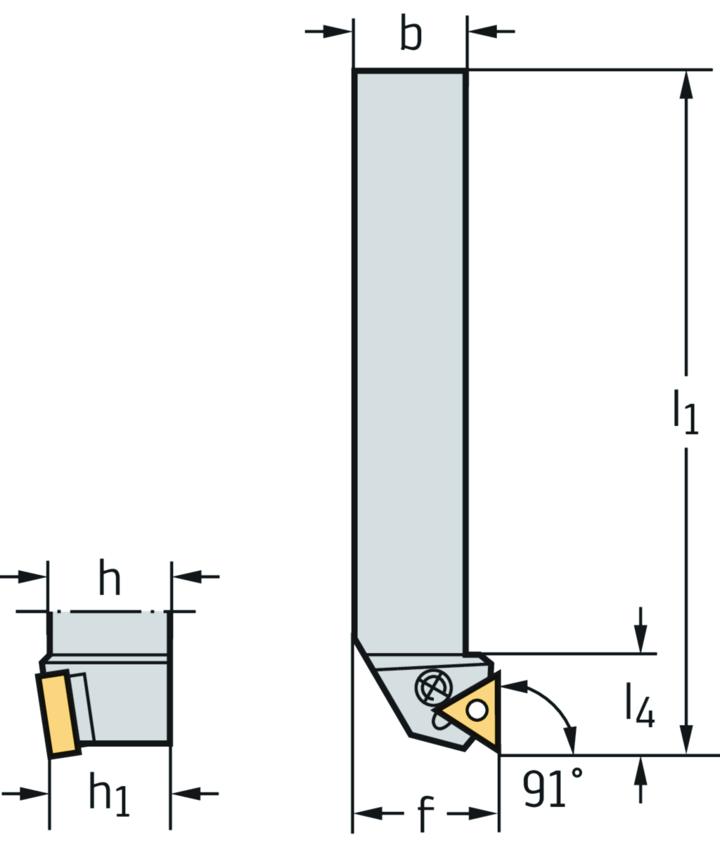 Schaftwerkzeug – Kniehebelspannung PTGN • Walter Turn • metrisch • Vierkantschaft • κ=91° • rechts • 32x25mm • dreieckige Platte • TN .. 1604 ..