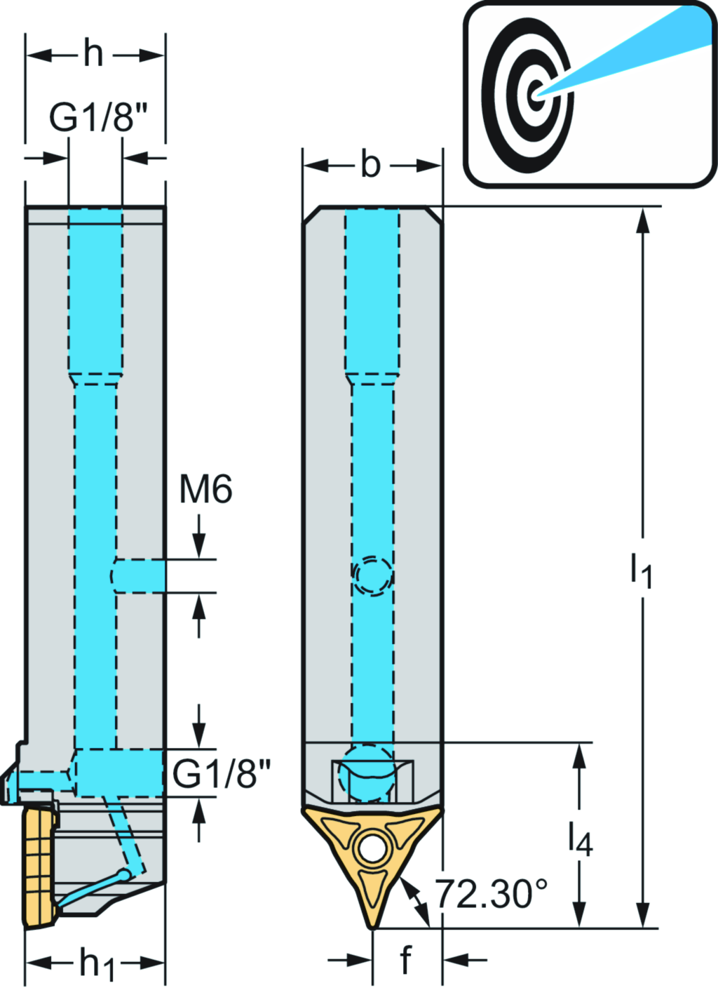 Schaftwerkzeug – Kopierdrehsystem W1010...-P • Walter Turn • metrisch • Vierkantschaft • κ=72,5° • Neutral • 16x16mm • Platte mit speziellem Profil • WL .. 1703 .. • Präzisionskühlung