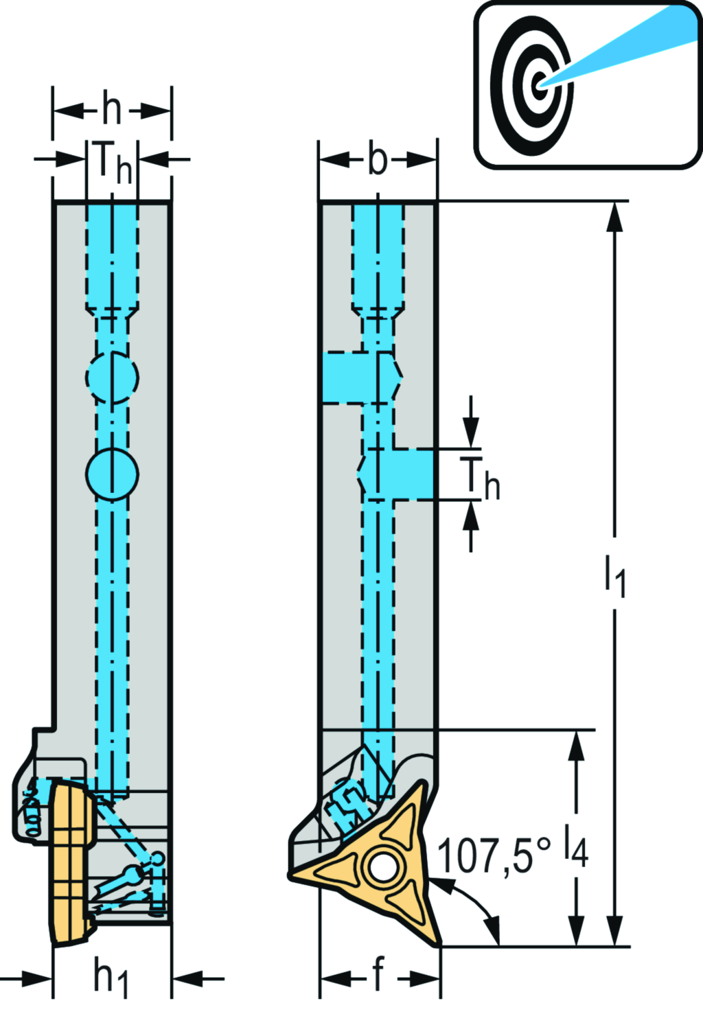 Schaftwerkzeug – Kopierdrehsystem W1011...-S-P • Walter Turn • metrisch • Vierkantschaft • κ=107,5° • rechts • 16x16mm • Platte mit speziellem Profil • WL .. 1703 .. • Präzisionskühlung