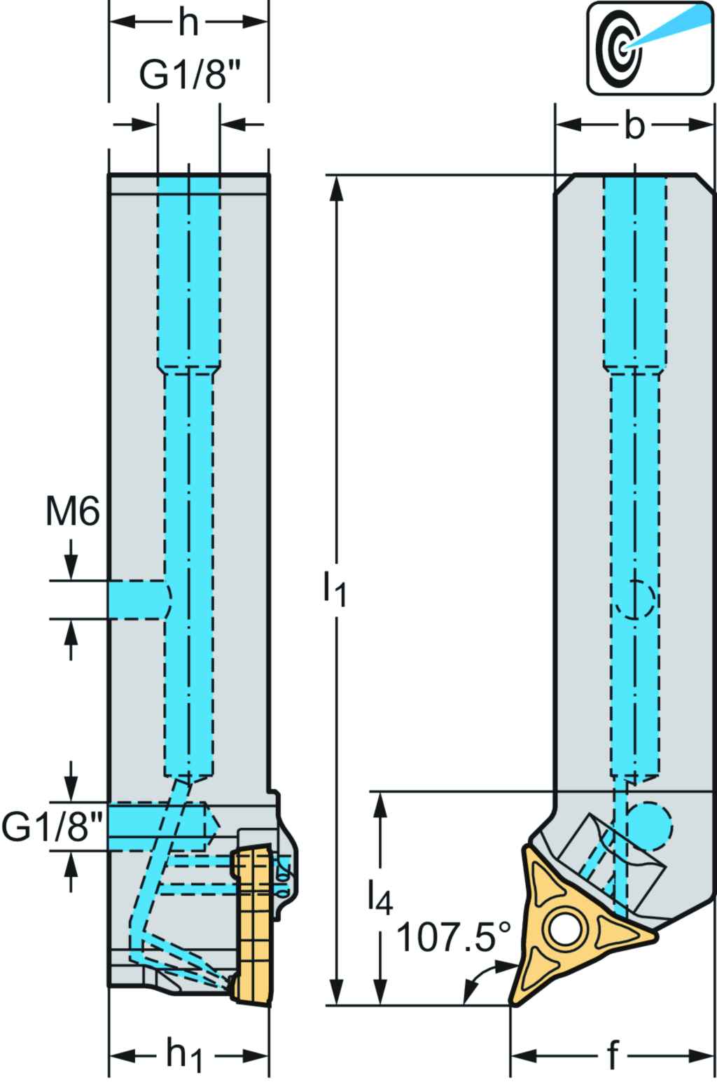 Schaftwerkzeug – Kopierdrehsystem W1011...-P • Walter Turn • metrisch • Vierkantschaft • κ=107,5° • links • 20x20mm • Platte mit speziellem Profil • WL .. 1703 .. • Präzisionskühlung