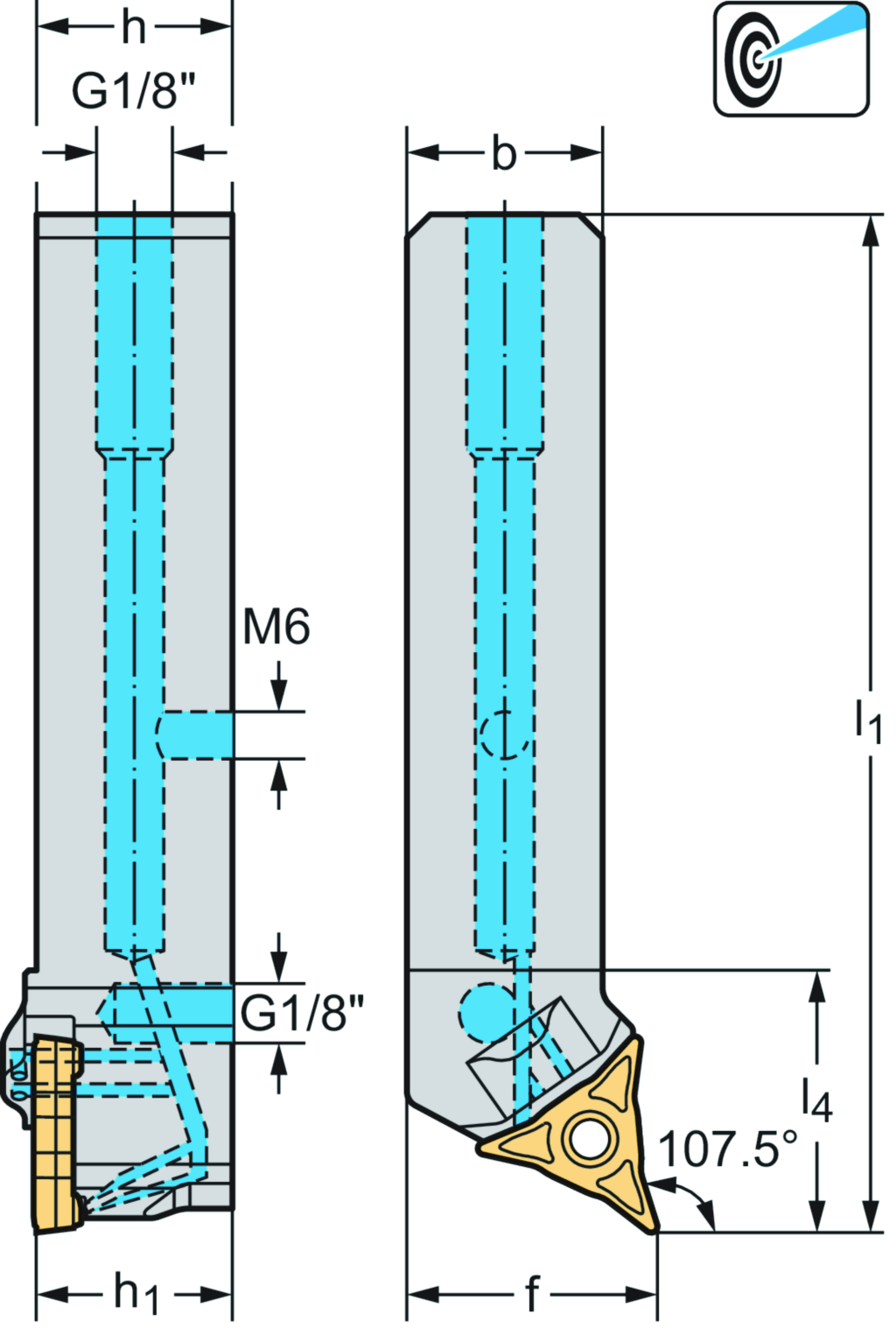 Schaftwerkzeug – Kopierdrehsystem W1011...-P • Walter Turn • metrisch • Vierkantschaft • κ=107,5° • rechts • 20x20mm • Platte mit speziellem Profil • WL .. 1703 .. • Präzisionskühlung