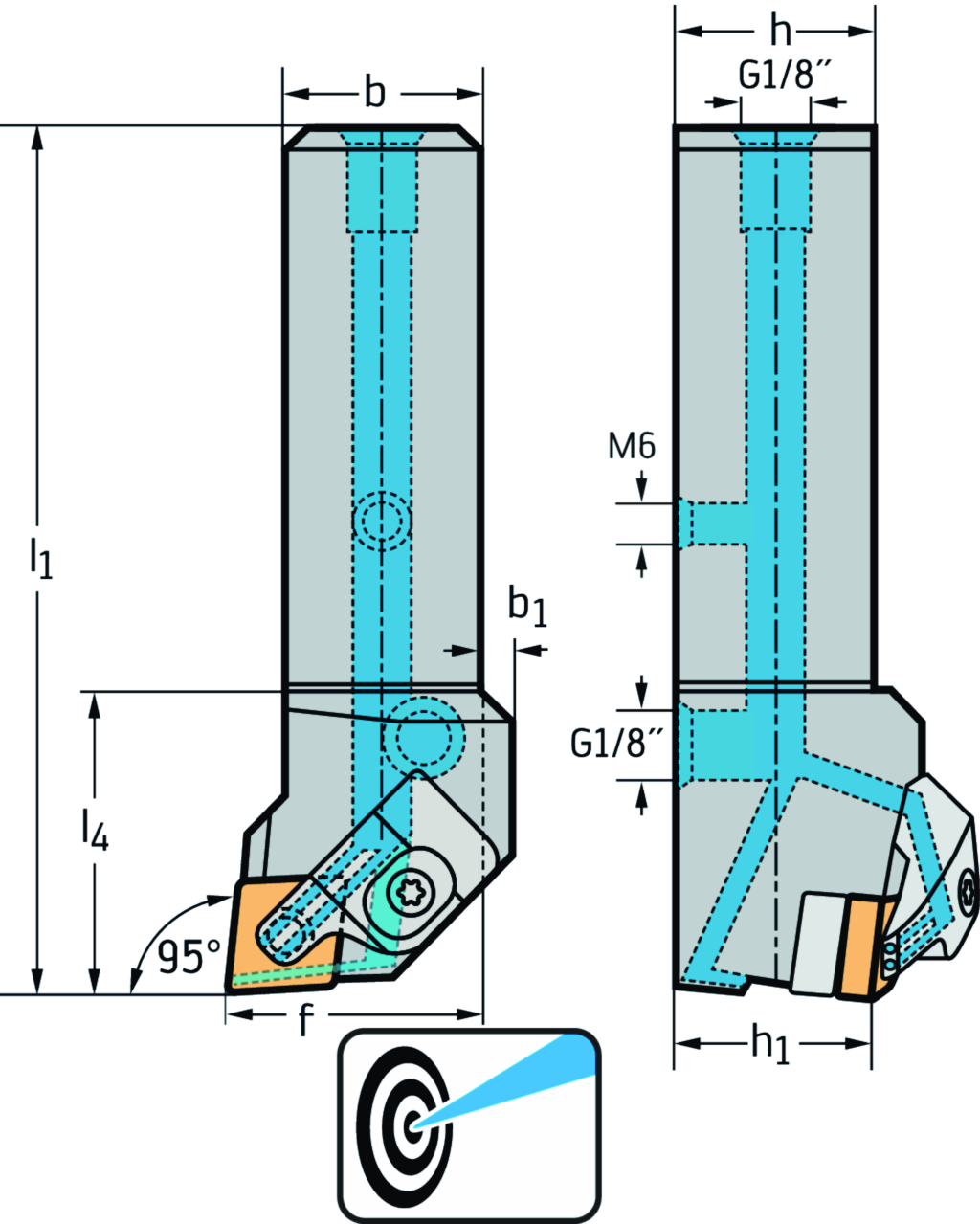 Schaftwerkzeug – Pratzenspannung DCLN...-P • Walter Turn • metrisch • Vierkantschaft • κ=95° • links • 25x25mm • rhombische Platte • CN .. 1204 .. • Präzisionskühlung