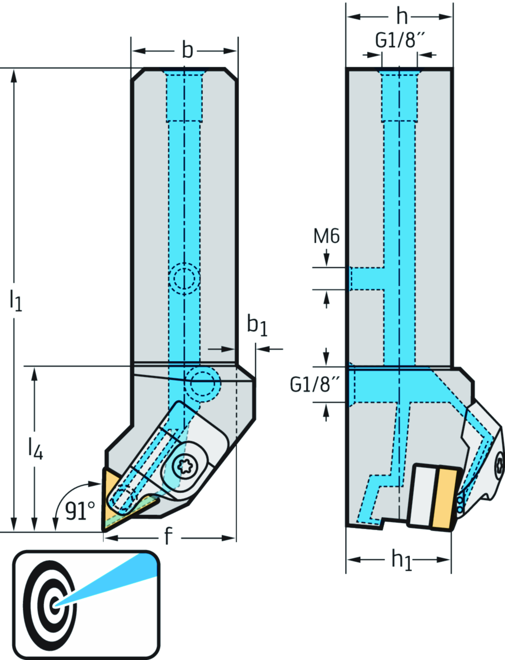 Schaftwerkzeug – Pratzenspannung DTGN...-P • Walter Turn • metrisch • Vierkantschaft • κ=91° • links • 20x20mm • dreieckige Platte • TN .. 1604 .. • Präzisionskühlung