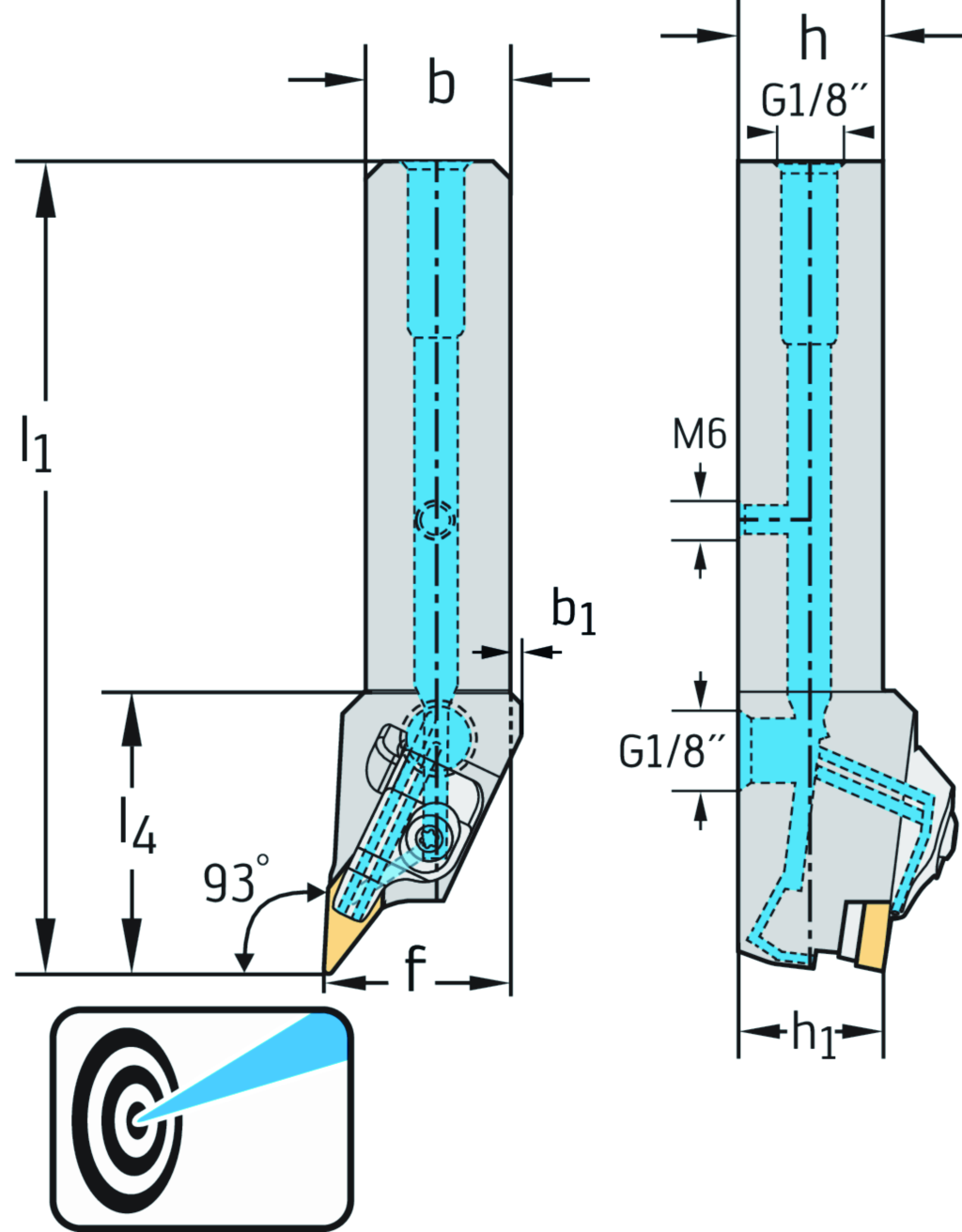 Schaftwerkzeug – Pratzenspannung DVJB...-P • Walter Turn • metrisch • Vierkantschaft • κ=93° • links • 20x20mm • rhombische Platte • VB .. 1604 .. • Präzisionskühlung