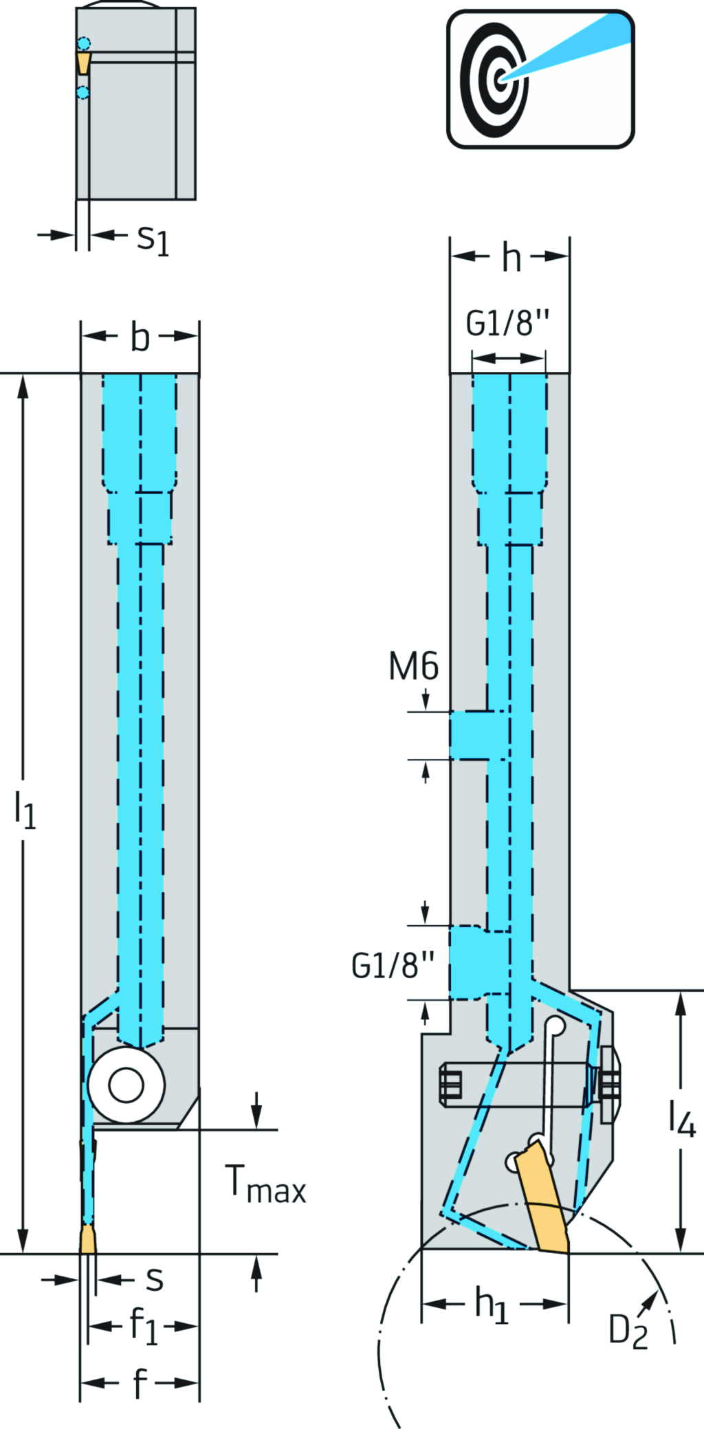 Schaftwerkzeug – Radialstechen G1011...-P • Schraubenklemmung • Präzisionskühlung • metrisch • Vierkantschaft • links • GX24 • s=2mm • Tmax=21mm