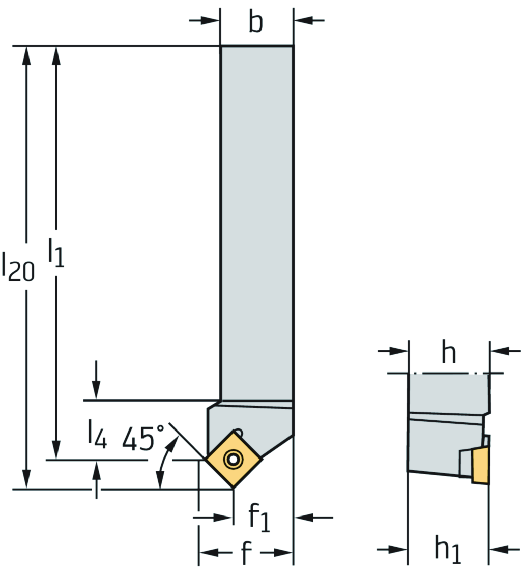 Schaftwerkzeug – Schraubenspannung SSDC • Walter Turn • metrisch • Vierkantschaft • κ=45° • links • 20x20mm • quadratische Platte • SC .. 1204 ..