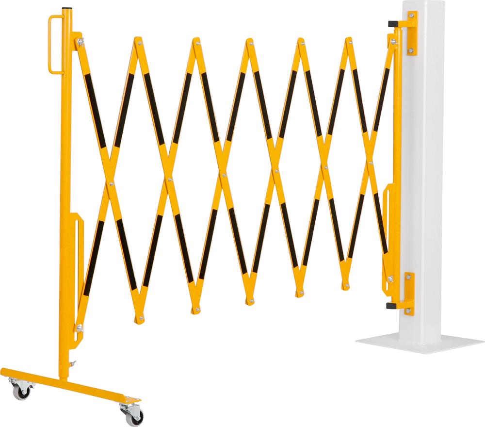 Produktinformationen "Scherengitter H 1050mm, L bis 3600mm gelb/schwarz Wandbefestigung/Rollenfuß"