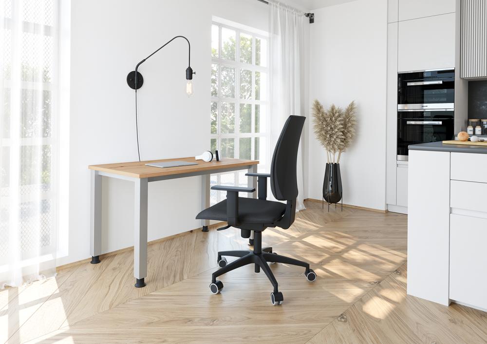 Produktinformationen "Schreibtisch 4 Fuß eckig B 120 x T 67 cm Asteiche/silber man. Stufenlos verstellb."