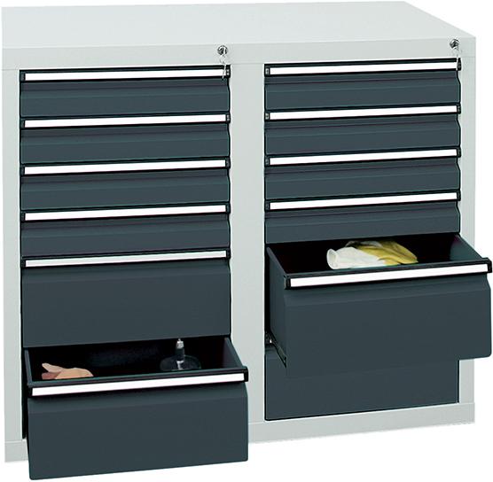Schubladenschrank STS 410 RAL 7035/7016 8x100 4x200 mm