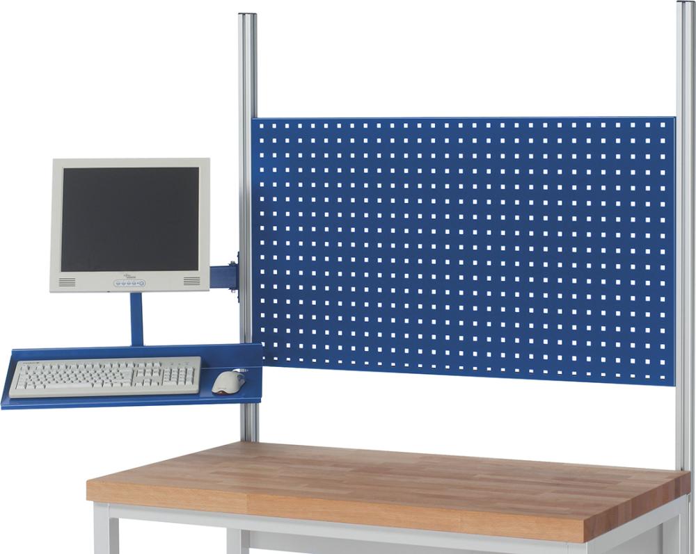• Aufnahmeplatte (neigbar): mit 2 Bohrbildern (VESA MIS-D 75/100) • Tablar (neigbar und höhenverstellbar): für Tastatur und Maus • Schwenkarm mit 3 Gelenken • Geeignet für alle Feldbreiten • Belastbarkeit: max. 15 kg • Montage an: Systemstützen (allseitig)