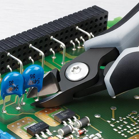 Durch den Einsatz von hochintegrierten Schaltungen, ICs genannt, werden elektrische Geräte immer kleiner. Allerdings reagieren ICs auf elektrostatische Energiefelder meist mit Fehlfunktionen oder einem Totalausfall. Daher sind in derartigen Anwendungen elektrostatisch abgesicherte Zangen unabdingbar.