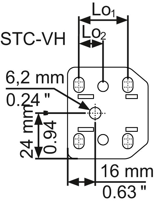 • Lochmuster der Grundplatte für Millimeter/Inch passend