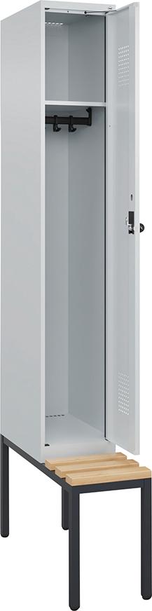 Garderobenschrank Evolo PLUS mit untergebauter Sitzbank (Holzleisten)