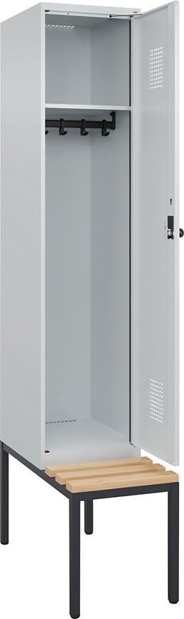 Garderobenschrank Evolo PLUS mit untergebauter Sitzbank (Holzleisten)