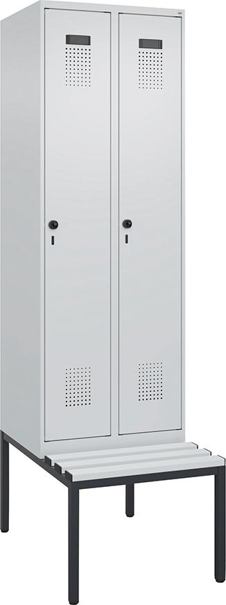 Garderobenschrank Evolo PLUS mit untergebauter Sitzbank (Kunststoffleisten)