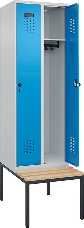 Garderobenschrank Evolo PLUS mit untergebauter Sitzbank (Holzleisten)