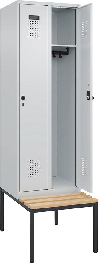 Garderobenschrank Evolo PLUS mit untergebauter Sitzbank (Holzleisten)