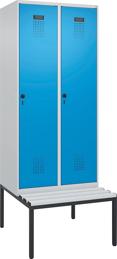 Garderobenschrank Evolo PLUS mit untergebauter Sitzbank (Kunststoffleisten)
